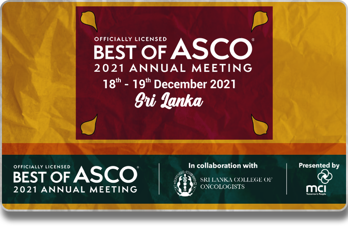 It's a pleasure to welcome you to Best of ASCO Sri Lanka - 2021. The Sri Lanka college of Oncologists & MCI India jointly organized to bring top-ranked and outstanding abstracts from the American society of clinical oncology Conference, June 2021, to Best of ASCO Sri Lanka 2021.